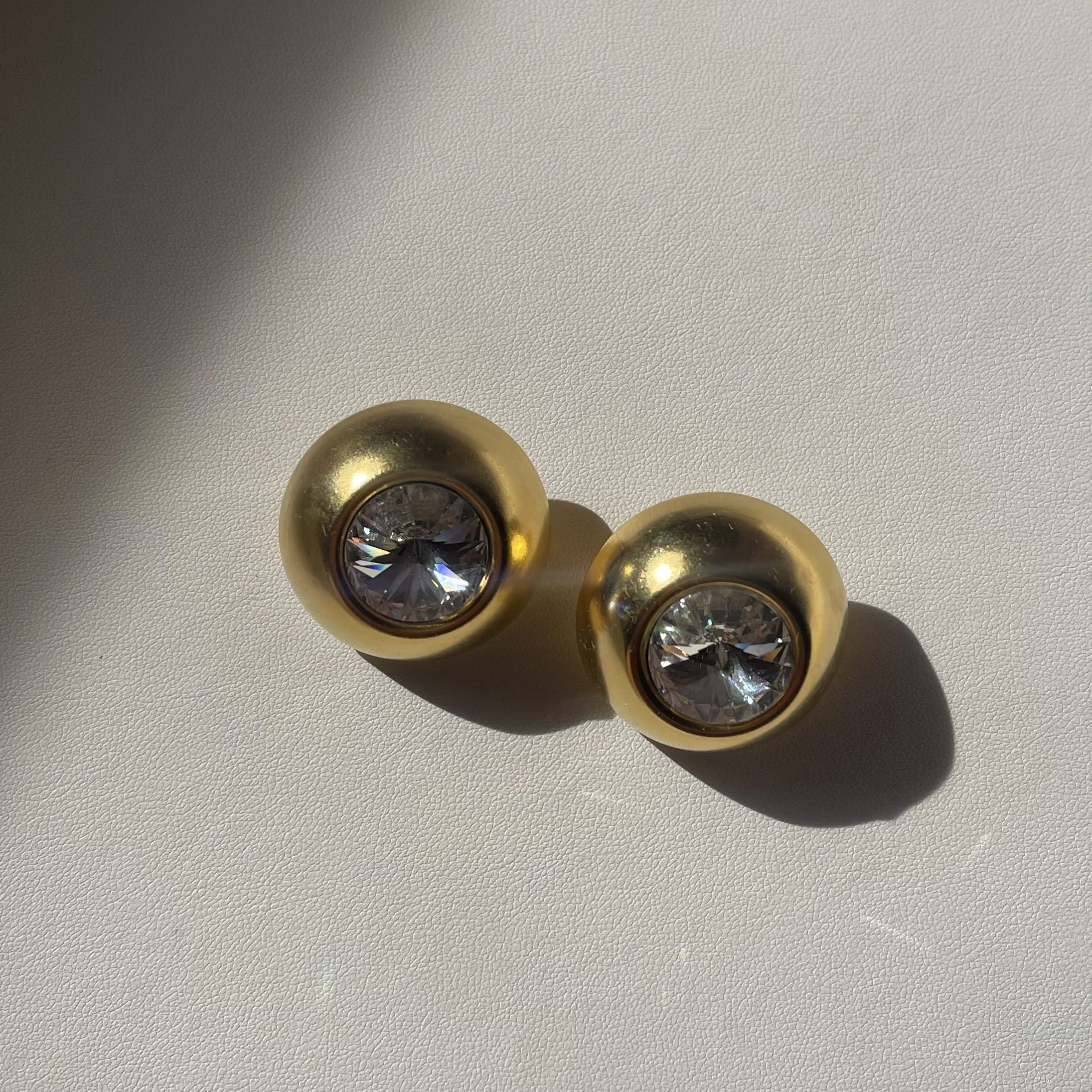 Vintage Gold Crystal Rivoli Domed Earrings